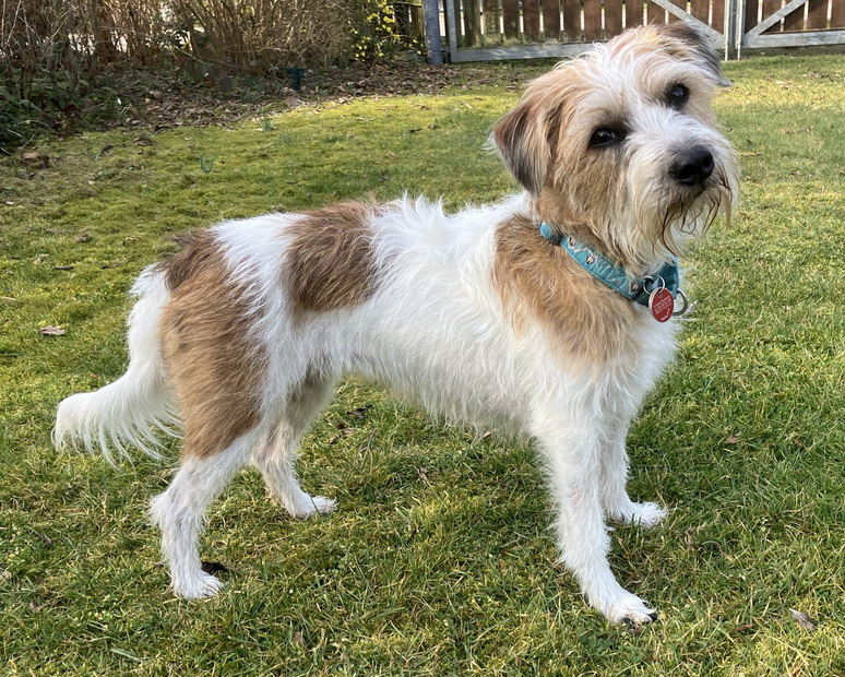 Anfang Mai 2022. Gerade sind wir wieder zurück von unserer Hochzeitsreise zum I-Wurf und freuen uns, dass alles so prima geklappt hat. Amigo vom Mühlenesch ist ein vitaler, muskulöser Jüngling, der mich mit seiner Freundlichkeit sehr begeistert hat - Edelweiß übrigens auch. Die beiden waren sehr verliebt. I-Wurf (2022 mit Edelweiß)