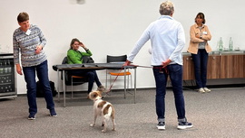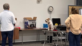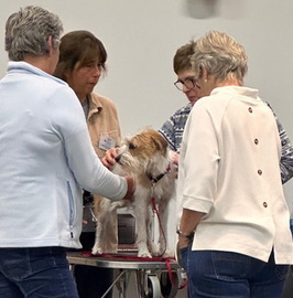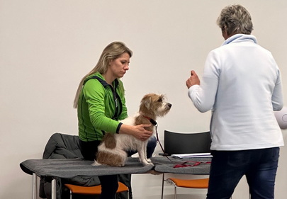 Alles lief bestens. Bei der Physio und auf dem Richtertisch stand sie ruhig, hat sich von allen Seiten begutachten lassen und brav ihre Zähne gezeigt. Nur beim Wesenstest, als es mit den vielen Menschen dann lauter und der Menschenkreis immer enger wurde (Kipferl in der Mitte), hat sie der Mut verlassen. Da war sie dann doch ein wenig gestresst.
